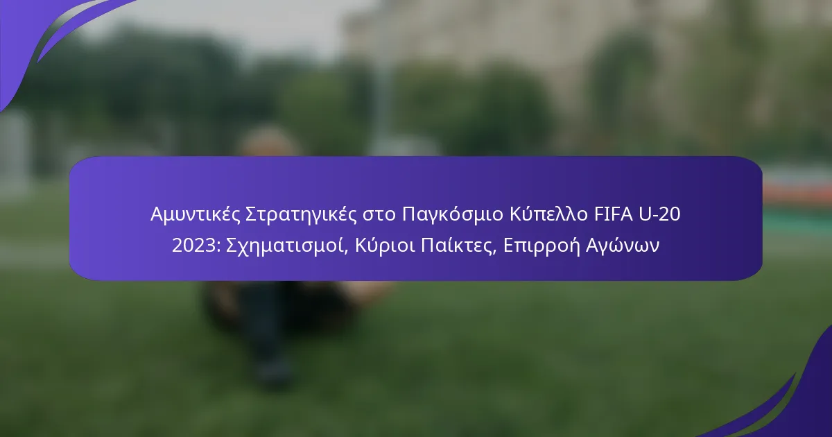Αμυντικές Στρατηγικές στο Παγκόσμιο Κύπελλο FIFA U-20 2023: Σχηματισμοί, Κύριοι Παίκτες, Επιρροή Αγώνων