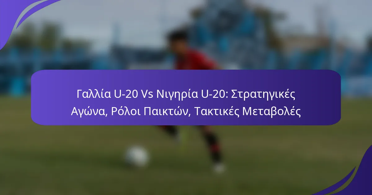 Γαλλία U-20 Vs Νιγηρία U-20: Στρατηγικές Αγώνα, Ρόλοι Παικτών, Τακτικές Μεταβολές